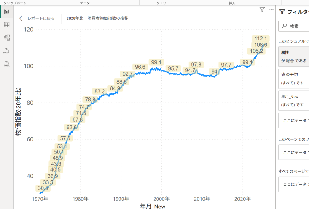 こうして時系列の推移でみると、きちんと物価が上がっているのが可視化されますね!!
